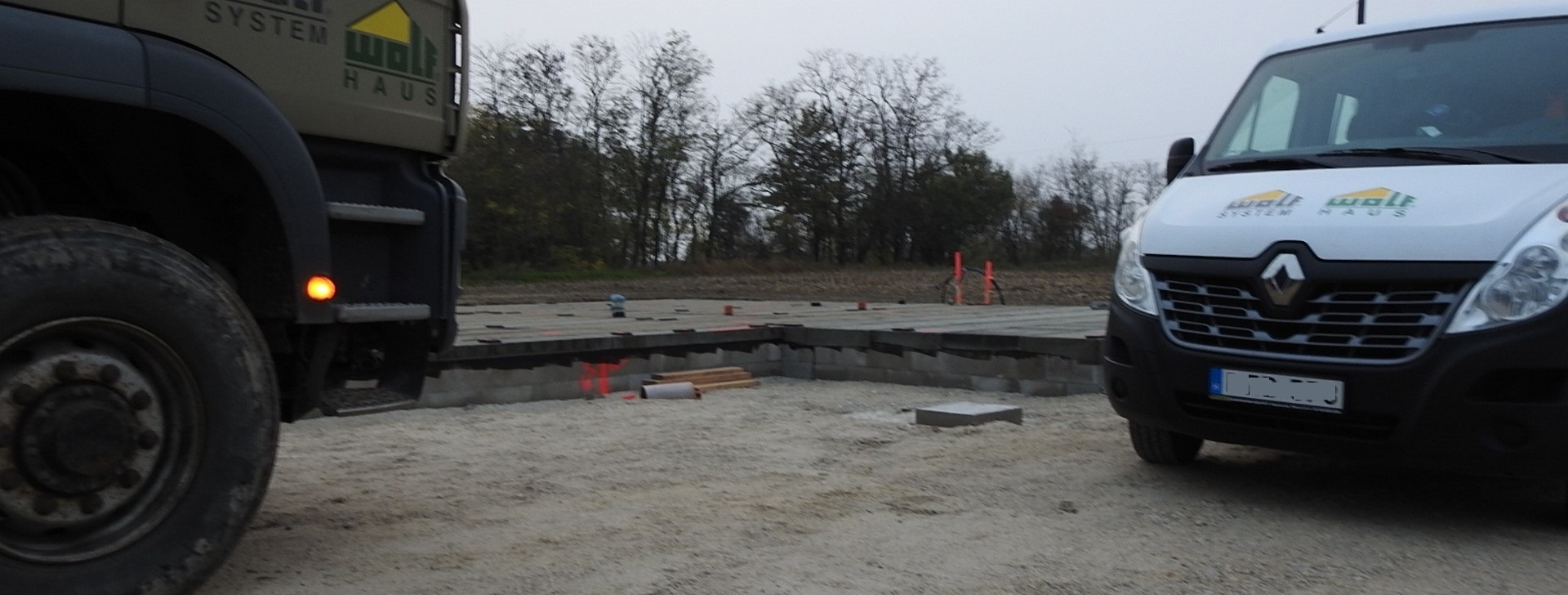 3. ALAPOZÁS/FOGADÓSZINT. Az alapozást cégünk már nem vállal! Tehát Önnek egy helyi kőműves vállalkozót kell majd keresnie, aki az építésze (vagy annak statikusa) által elkészített alapozási terv birtokában elkészíti a fogadószintet. Milyen alap kell a Wolf készháznak? Olyan amilyet az Ön építésze vagy annak statikusa tervezett. A kérdésre nem lehet egyszerű választ adni, mivel nem azonos az altalaj a különböző építési helyszíneken. Lehet, hogy valahova elég a sávalap egy betonlemezzel, máshova cölöpalap, vagy kútalap lehet szükséges. Tapasztalatunk szerint a leggyakoribb megoldás a kb. 40 cm széles és 80-90 cm mély sávalap, amire legalább 2 sor zsaluköves lábazat készül. A lábazatra, megfelelő belső feltöltés és szivárgó kavicsos réteg töltés után egy kb. 12 cm-es vasalt sík betonlemezt kell önteni. A lemezből ne álljanak ki betonvasak, nekünk egy sík lemez kell a készházrendszerünk összeszereléséhez! FONTOS: a végleges járdaszinttől az alsó vázfa alsó síkjának legalább 30 cm-el magasabban kell állnia (hogy később se hólé, se más csapadék, nedvesség ne érhesse el a fa vázszerkezetet). Általában elmondhatjuk, hogy a ma egyre divatosabb pld. lemezalap nem megfelelő, mivel 20 cm-es vastagságával nem tudja a terep és az alsó vázfa közötti 30 cm-es szintkülönbséget biztosítani (így a nedvesség elleni védelmet sem).